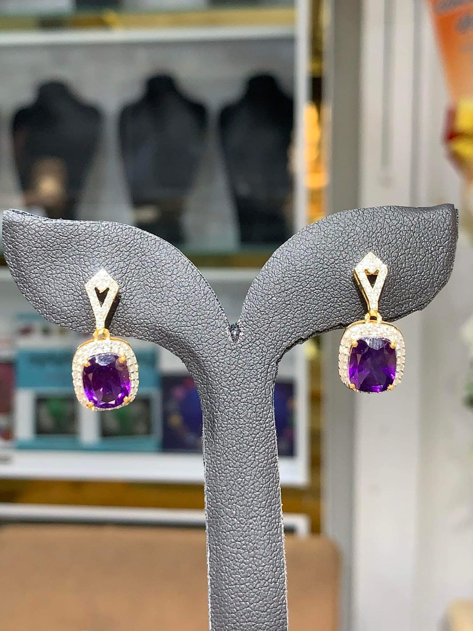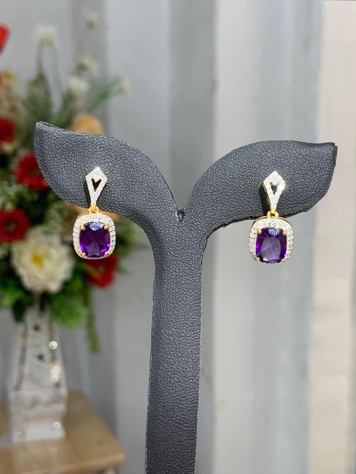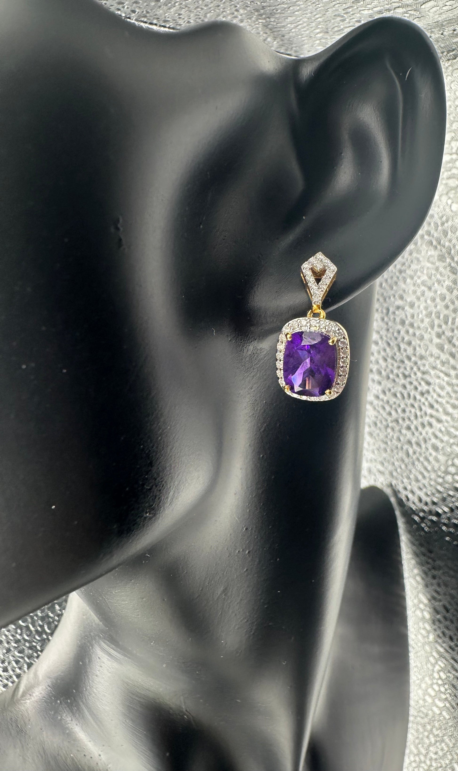 A stunning set of 4-carat amethyst gemstones, elegantly surrounded by shimmering diamonds for a bold, luxurious look. Perfectly suited for formal events or special occasions, this piece adds a touch of sophistication and timeless charm.